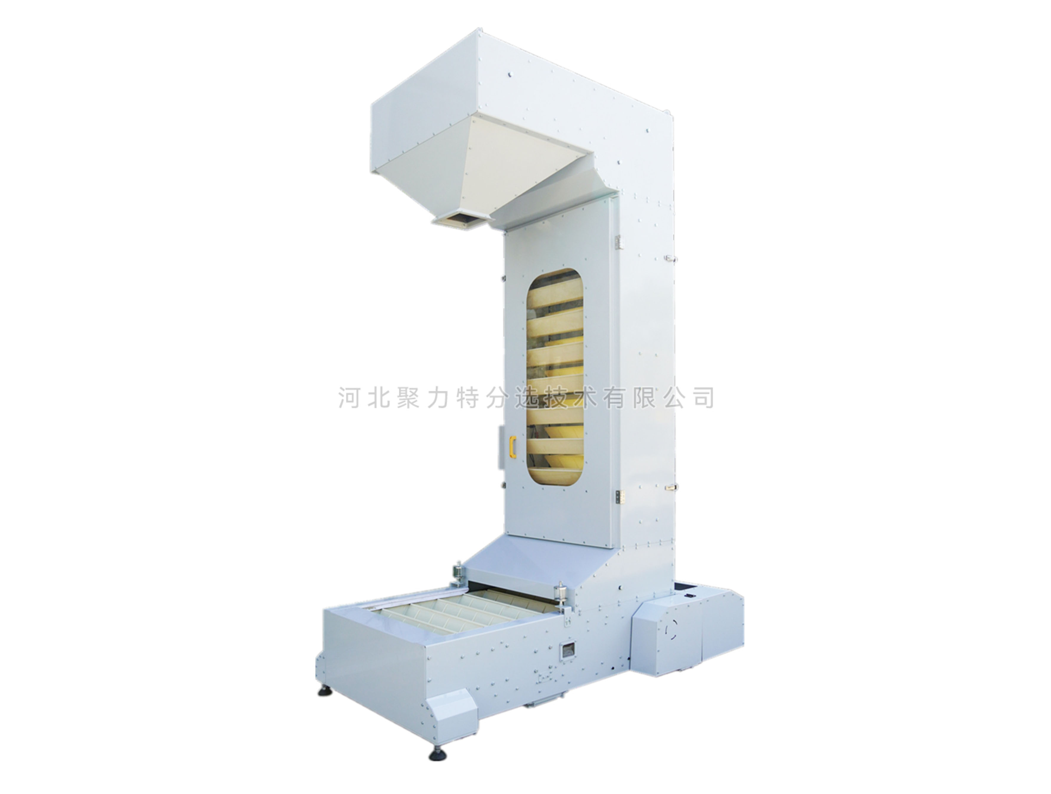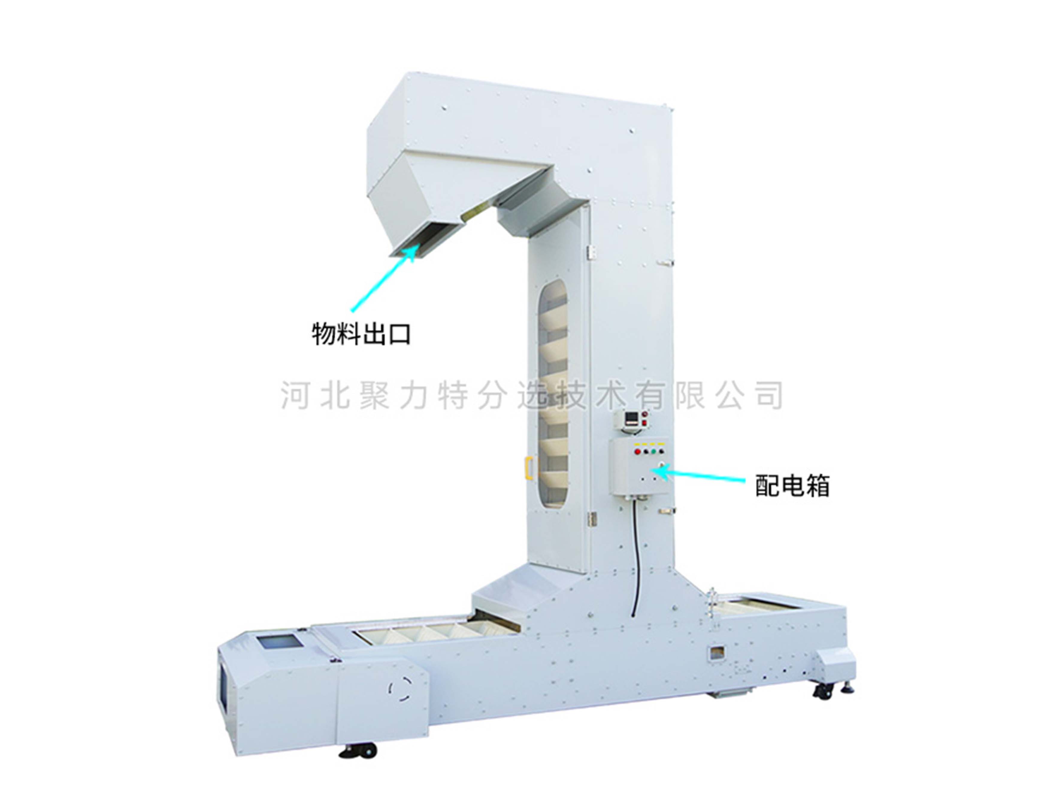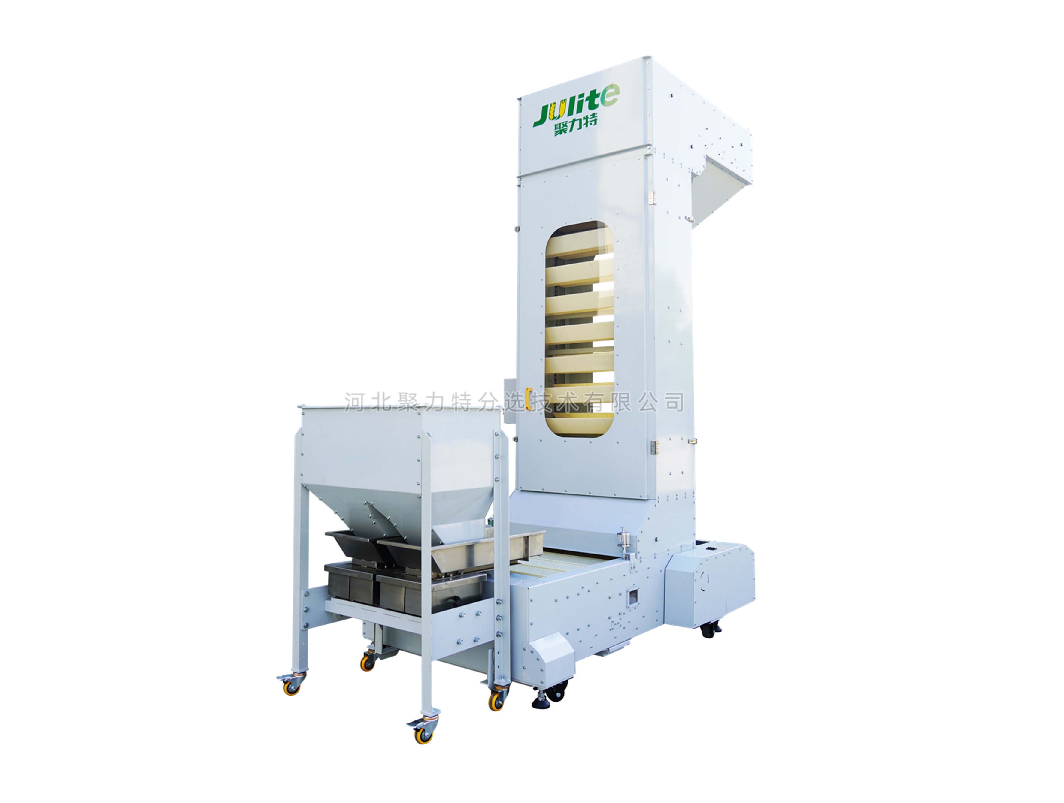 1、輸送鏈為套筒滾子鏈,誘導(dǎo)式重力卸料,無破碎;