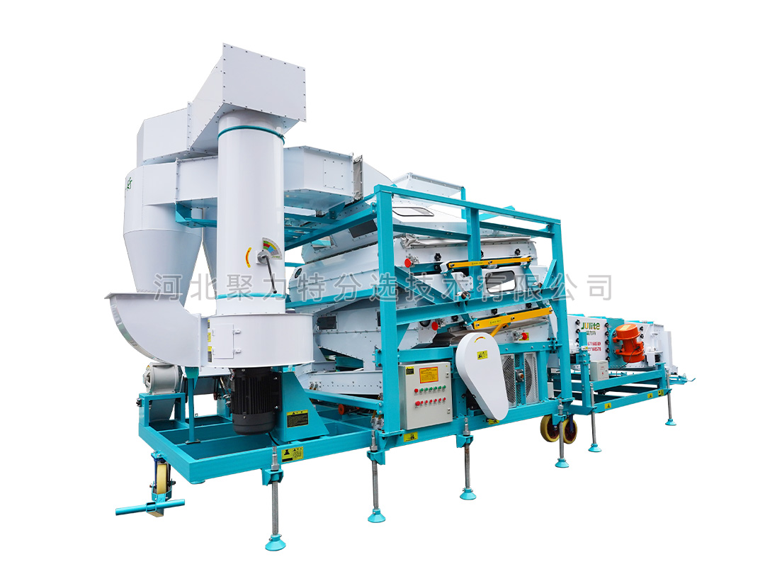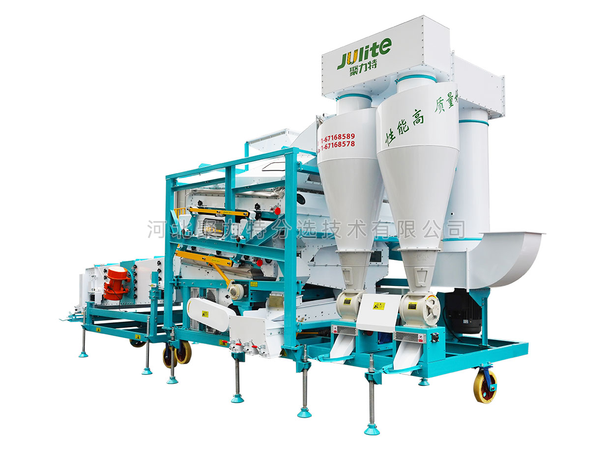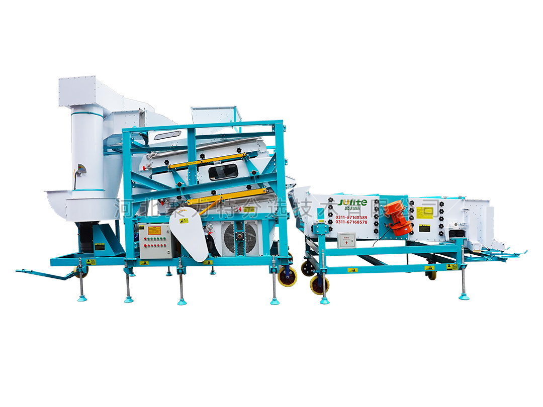 高粱篩選組合設(shè)備由雙體脫殼機(jī)、低速無破碎提升機(jī)、復(fù)式比重清選機(jī)、雙篩箱振動(dòng)篩組成。